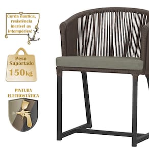 Fotos meramente ilustrativas. Tonalidades podem variar dependendo do monitor. Os objetos que ambientam as Fotos não acompanham o produto. Antes de comprar o seu produto verifique as medidas, o local onde pretende instalar e se necessário contratar o serviço de um profissional qualificado. Produto conhecido como: Cadeira Noronha, Cadeira de alumínio, Corda náutica, Estofado impermeável, Móveis de exterior, Cadeira resistente à água, Design moderno em Cadeira, Cadeira para área externa, Cadeira de jardim, Móveis para varanda, Cadeira durável, Cadeira de alta qualidade, Conforto em Cadeira, Cadeira elegante.