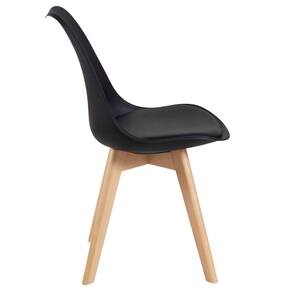 Cadeira modelo Leda: Material do encosto: Polipropileno - Material do assento: Couro PU - Material dos pés: Madeira natural - Altura do encosto: 82 cm - Altura do assento: 44 cm - Largura do assento: 48 cm - Profundidade do assento: 43 cm - Distância entre os pés: 42 cm - Peso suportado: 130 kg - Garantia: 3 meses.