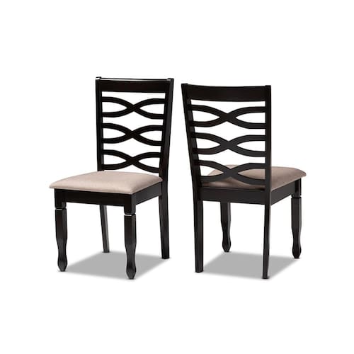 Uma silhueta elegante é combinada com assentos confortáveis para tornar a cadeira de jantar Lanier uma adição atemporal a qualquer espaço de jantar. Esta cadeira de madeira apresenta um elegante acabamento marrom escuro que complementa o estofamento em tecido leve. Projetado com conforto e estilo em mente, o Lanier possui um assento acolchoado de espuma macia, bem como um impressionante design recortado nas costas. Pés afunilados dão um toque clássico e refinado. Igualmente agradável para jantares e jantares em família, a cadeira de jantar Lanier certamente aprimorará qualquer experiência gastronômica. A cadeira de jantar Lanier é fabricada na Malásia e requer montagem.