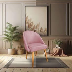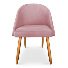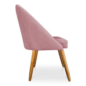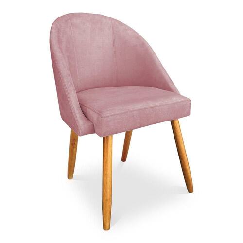 Cadeira De Jantar Bela Veludo Rosê Pés Palito Castanho Pallazio