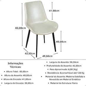 O encosto estofado oferece conforto e suporte para suas costas, garantindo uma experiência de refeição confortável e relaxante. A estrutura em metal garante estabilidade e durabilidade para a cadeira, tornando-a uma escolha segura e confiável para sua casa ou escritório.
