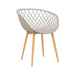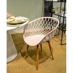 Uma cadeira versátil, perfeita para vários ambientes : desde a mesa de jantar, ao aconchego do quarto. Cadeira com assento em PP, com braços e encosto. Possui base fixa em metal adesivado com textura em madeira. Conjunto com 6 unidades