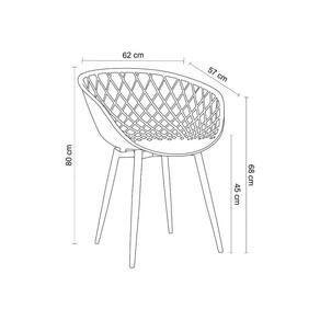 Uma cadeira versátil, perfeita para vários ambientes : desde a mesa de jantar, ao aconchego do quarto. Cadeira com assento em PP, com braços e encosto. Possui base fixa em metal adesivado com textura em madeira.