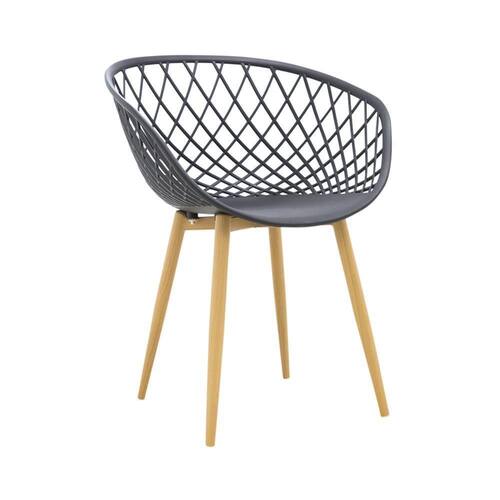 Uma cadeira versátil, perfeita para vários ambientes : desde a mesa de jantar, ao aconchego do quarto. Cadeira com assento em PP, com braços e encosto. Possui base fixa em metal adesivado com textura em madeira.