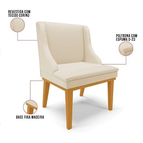 Experimente deixar sua decoração com bom gosto e qualidade com a cadeira de jantar Liz. É perfeita para você não abre mão de qualidade e requinte na hora das refeições e confraternizações com amigos e familiares. Produzida com Base Fixa Madeira Castanho que suportam até 120 kg, estrutura ecologicamente correta de madeira de eucalipto e pinus, oferece durabilidade e qualidade ao móvel, seu estofamento é com espuma de densidade D-23, revestido em tecido Corino no tom Bege. Sofisticada e excelente para deixar sua sala de jantar mais aconchegante. Compre sem sair de casa!