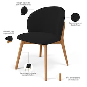 Model: Mia | OriginCountry: | ProductContents: 01 Cadeira | ProductLength: 54 cm | ProductHeight: 81 cm | Color: Preto | OriginState: PR | ColorSimple: Preto | MaterialFamily: Madeira, Suede e espuma | ProductInstructions: Produto para uso em ambiente interno, nao devendo ficar exposto ao sol, calor e umidade excessivos. | ColorSupplier: Preto | ColorFamily: Preto | SizeDescription: Altura: 81 cm x Largura: 56 cm x Profundidade: 54 cm | Material: Estrutura em Madeira, Revestimento em Suede e espuma | ProductWeight: 7 kg | ProductWarranty: 90 dias após o do produto | SupplierSimpleName: Cadeira de Jantar e Estar Living Estofada Mia L02 Suede Preto - Lyam Decor | ProductWidth: 56 cm