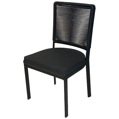 A cadeira ITAPEMA é produzida em alumínio tubo oblongo com reforços interno, com pintura eletro estática (epóxi) de alta qualidade e revestida com corda sintética (Coex) com proteção UV, no assento é utilizado uma madeira de MDF de 15 mm, espuma densidade D28 e revestido de tecido acquablock (Karsten) impermeável, nos pés são utilizadas sapatinhas de tecnil nylon que não danifica seu porcelanato e tem uma maior resistência a piso ásperos.