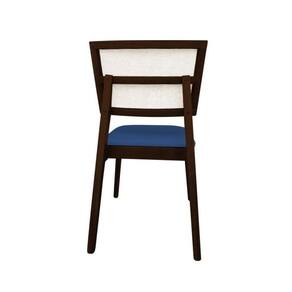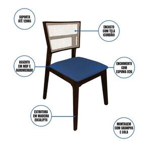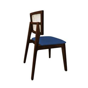 Cadeira De Jantar Em Tela Premium Madeira Maciça Manuela Azul Veludo Castanho