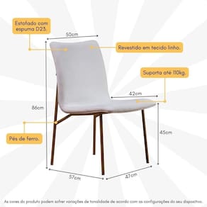 O produto será entregue montado. Acabamento: Tecido | Tonalidade: Preto | Material: Ferro | Referência do Modelo: CR50096 | Coleção: Cadeiras de Jantar | Instruções de Cuidado: Utilize aspirador de pó levemente. Não utilizar produtos químicos ou abrasivos. | Sistema de Montagem: O produto será entregue montado. | Conteúdo da Embalagem: 1 cadeira | Altura Montado: 86 | Largura Montado: 47 | Profundidade Montado: 57 | Tamanho (L x A x P): 47 x 86 x 57 | Peso do Produto: 10 | Fabricante: Cercatto | Garantia do Fabricante: 3 | Requer Montagem: Não | Cor da estrutura: Preto | Desenho da cadeira: N/A | Desenho do tecido: N/A | Incluí estofamento: Sim | Cor do estofamento: Preto | Quantidade de cadeiras por conjunto: 1 | Material do estofado: Espuma | Altura (cm): 86 cm | Largura (cm): 47 cm | Profundidade (cm): 57 cm | Material dos pés: Ferro | Peso máximo suportado: 110 kg | Produto: Cadeira | Cômodo Indicado: Sala de Jantar | Altura do Produto com Embalagem: 60 | Largura do Produto com Embalagem: 60 | Comprimento do Produto com Embalagem: 88 | Peso do Produto com Embalagem: 10 | Descrição do Tamanho: (L x A x P): 47 x 86 x 57 cm | Tempo de Garantia: 3 meses | Nome do Produto no Fornecedor: Cadeira de Jantar Estofada e Pés de Ferro Multimóveis CR50096 Preto | Estado de Origem: RS | Produto precisa de Montagem?: Não | Destaque 1: Revestida em tecido linho: maior resistência e durabilidade, além de um toque macio. | Destaque 2: Estofado com espuma D23. | Destaque 3: Pés de ferro pintado: promove um design elegante para o ambiente. | Destaque 4: Suporta até 110kg. | Destaque 5: Tamanho do Produto Montado (L x A x P): 47 x 86 x 57 | Marca: Multimóveis | É cadeira de balanço: Não | É Dobrável: Não | Firmeza: Firme | É Empilhável: Não | Espessura do assento: N/A | Tempo de montagem: N/A | Largura do assento: 50 cm | Estilo: Moderno | Profundidade do assento: 42 cm | Altura do assento a partir do solo: 45 cm Cor: Off White/Dourado Acetinado