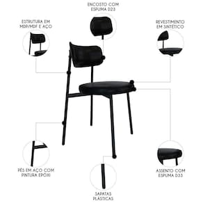 A estética refinada e a capacidade de adaptação a diferentes espaços são pontos chave da Cadeira Estofada, que a tornam ideal para Sala de Jantar, restaurantes ou ambientes de escritório. O encosto anatômico oferece excelente conforto e suporte, enquanto sua estrutura robusta em aço com pintura epóxi assegura durabilidade e resistência. O revestimento em sintético confere um toque de sofisticação e conforto, enquanto o assento com espuma D33, e o encosto com espuma D23, proporcionam um toque macio, garantindo um bom equilíbrio entre conforto e firmeza. Além disso, a utilização de MDF/MDP tanto no assento quanto no encosto da Cadeira garante uma base sólida e estável, completando o conjunto de características que fazem desta cadeira uma excelente escolha para quem busca qualidade, funcionalidade e estilo.