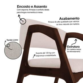 AS IMAGENS SÃO MERAMENTE ILUSTRATIVAS E PODEM SOFRER VARIAÇÕES DE COR E PEQUENOS DETALHES DE ACORDO COM O SEU MONITOR, ILUMINAÇÃO DO AMBIENTE E ATÉ MESMO A SUA PERCEPÇÃO VISUAL.Cadeira de Jantar Estofada Gabriela Castanho Linho Bege