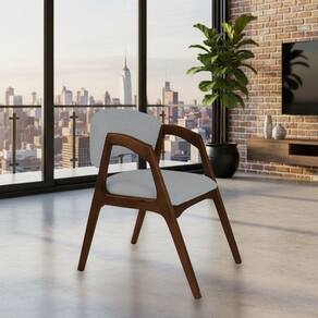 O assento com espuma de alta densidade D26 garante conforto prolongado, enquanto o encosto estofado com espuma D20 proporciona apoio suave e ergonômico. Revestida em tecidos nobres, a cadeira alia maciez e durabilidade, adaptando-se com facilidade a diferentes estilos de decoração.