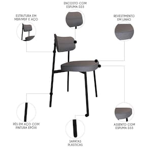 O revestimento em linho de alta qualidade confere um toque de suavidade e sofisticação, enquanto o MDF/MDP no assento e encosto garante resistência e durabilidade ao produto. Projetada para oferecer o suporte necessário, possui assento em espuma D33 e encosto em espuma D23, proporcionando uma experiência ergonômica e confortável. Além de sua funcionalidade, o kit de Cadeiras Estofadas se destaca pelo design moderno e elegante, capaz de se adaptar a diversos ambientes da sua casa. Os pés fixos em aço com pintura epóxi na cor preta trazem estabilidade. Seja no Escritório, na Sala de Jantar ou até mesmo em um canto de leitura, ela se encaixa perfeitamente em qualquer ambiente. Seu encosto curvo não apenas proporciona conforto, mas também transforma o ambiente onde está inserida, conferindo um toque mais moderno aos seus espaços.