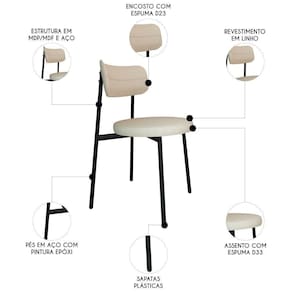 A estética refinada e a capacidade de adaptação a diferentes espaços são pontos chave do kit de Cadeiras Estofadas, que a tornam ideal para Sala de Jantar, restaurantes ou ambientes de escritório. O encosto anatômico oferece excelente conforto e suporte, enquanto sua estrutura robusta em aço com pintura epóxi assegura durabilidade e resistência. O revestimento em linho confere um toque de sofisticação e conforto, enquanto o assento com espuma D33, e o encosto com espuma D23, proporcionam um toque macio, garantindo um bom equilíbrio entre conforto e firmeza. Além disso, a utilização de MDF/MDP tanto no assento quanto no encosto da Cadeira garante uma base sólida e estável, completando o conjunto de características que fazem desta cadeira uma excelente escolha para quem busca qualidade, funcionalidade e estilo.