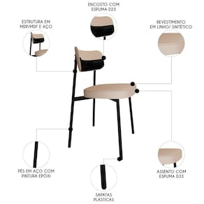 Escolher uma Cadeira adequada é essencial para garantir o conforto e o bem-estar, e a Cadeira de Jantar Estofada Kit 4 Ella M25 Linho Areia/Sintético Preto, da Mpozenato, garante isso e muito mais!