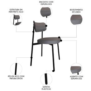 O revestimento em linho de alta qualidade confere um toque de suavidade e sofisticação, enquanto o MDF/MDP no assento e encosto garante resistência e durabilidade ao produto. Projetada para oferecer o suporte necessário, possui assento em espuma D33 e encosto em espuma D23, proporcionando uma experiência ergonômica e confortável. Além de sua funcionalidade, o kit de Cadeiras Estofadas se destaca pelo design moderno e elegante, capaz de se adaptar a diversos ambientes da sua casa. Os pés fixos em aço com pintura epóxi na cor preta trazem estabilidade. Seja no Escritório, na Sala de Jantar ou até mesmo em um canto de leitura, ela se encaixa perfeitamente em qualquer ambiente. Seu encosto curvo não apenas proporciona conforto, mas também transforma o ambiente onde está inserida, conferindo um toque mais moderno aos seus espaços.