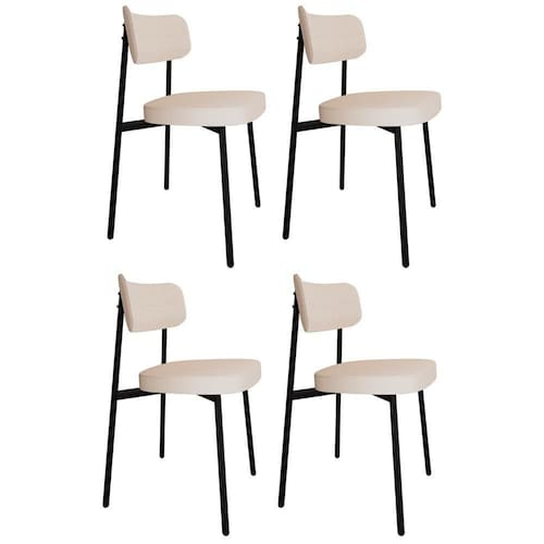 Cadeira De Jantar Estofada Kit 4 Ella M25 Linho Palha - Mpozenato - Bege