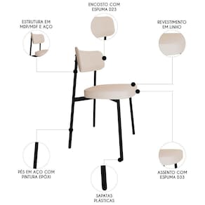 O revestimento em linho de alta qualidade confere um toque de suavidade e sofisticação, enquanto o MDF/MDP no assento e encosto garante resistência e durabilidade ao produto. Projetada para oferecer o suporte necessário, possui assento em espuma D33 e encosto em espuma D23, proporcionando uma experiência ergonômica e confortável. Além de sua funcionalidade, o kit de Cadeiras Estofadas se destaca pelo design moderno e elegante, capaz de se adaptar a diversos ambientes da sua casa. Os pés fixos em aço com pintura epóxi na cor preta trazem estabilidade. Seja no Escritório, na Sala de Jantar ou até mesmo em um canto de leitura, ela se encaixa perfeitamente em qualquer ambiente. Seu encosto curvo não apenas proporciona conforto, mas também transforma o ambiente onde está inserida, conferindo um toque mais moderno aos seus espaços.