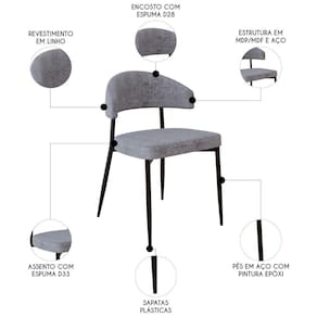 Adaptação e versatilidade são as principais características desse conjunto de cadeiras, permitindo que seja utilizado em Sala de Jantar, restaurantes ou Escritório, ajustando-se perfeitamente a diferentes espaços. O encosto anatômico oferece conforto e suporte, proporcionando uma experiência agradável, enquanto a estrutura em aço com pintura epóxi garante durabilidade e resistência ao longo do tempo. O revestimento em linho lautrec, além de esteticamente sofisticado, é fácil de manter, enquanto o assento com espuma D33 oferece maciez e firmeza. O encosto, com espuma D28, combina conforto e estabilidade. Produzida com MDF/MDP no assento e encosto, o kit de Cadeira Estofada alia design moderno e materiais de alta qualidade para proporcionar uma experiência de uso duradoura e confortável.