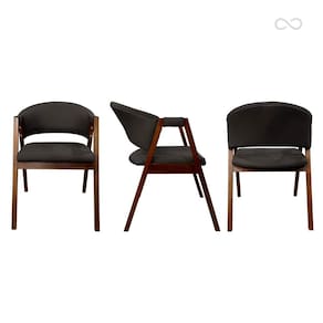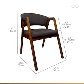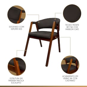 Cadeira de Jantar Estofada Madeira com Braço Ravena Curva Marrom Café CCS