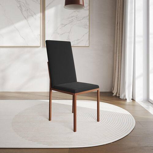 Cadeira De Jantar Estofada Mônaco Premium Cobre E Preta - Cor: Preto