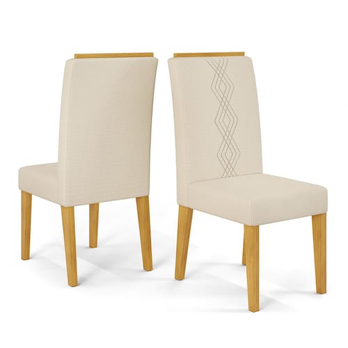 Cadeira de Jantar Estofada Yasmin Conjunto com 2 Cadeiras Cedro/Linho Neve - DJ Móveis