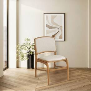 AS IMAGENS SÃO MERAMENTE ILUSTRATIVAS E PODEM SOFRER VARIAÇÕES DE COR E PEQUENOS DETALHES DE ACORDO COM O SEU MONITOR, ILUMINAÇÃO DO AMBIENTE E ATÉ MESMO A SUA PERCEPÇÃO VISUAL.Cadeira de Jantar FlorenÃa em Madeira Jequitibà Natural Encosto em Tecido Premium Linho Bege