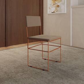 Cadeira De Jantar Industrial Estofada Veludo Bege Base Cobre Vitoria - Cor: Bege