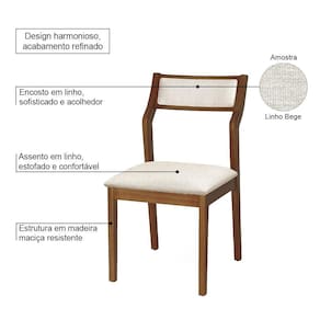 AS IMAGENS SÃO MERAMENTE ILUSTRATIVAS E PODEM SOFRER VARIAÇÕES DE COR E PEQUENOS DETALHES DE ACORDO COM O SEU MONITOR, ILUMINAÇÃO DO AMBIENTE E ATÉ MESMO A SUA PERCEPÇÃO VISUAL.Cadeira de Jantar Lagum Jequitibà Terra Encosto Premium Linho Bege