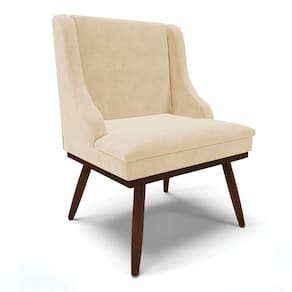 Cadeira De Jantar Liz Suede Base Fixa Madeira Pés Palito Tabaco - D`rossi Cor Bege