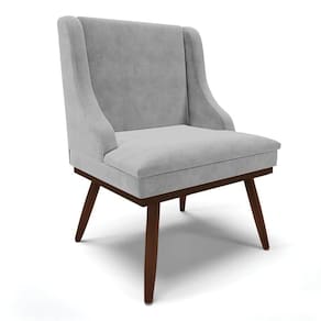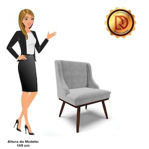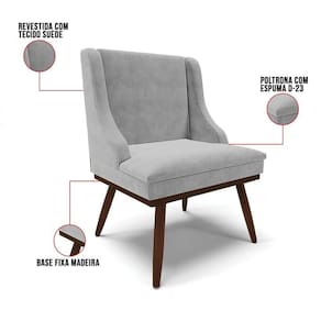 Cadeira De Jantar Liz Suede Base Fixa Madeira Pés Palito Tabaco - D`rossi Cor Cinza