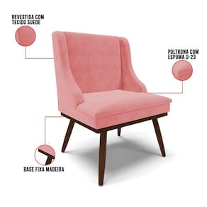 Cadeira De Jantar Liz Suede Base Fixa Madeira Pés Palito Tabaco - D`rossi Cor Rose - Rosa