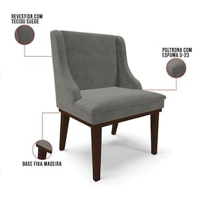 Experimente deixar sua decoração com bom gosto e qualidade com a cadeira de jantar Liz. É perfeita para você não abre mão de qualidade e requinte na hora das refeições e confraternizações com amigos e familiares. Produzida com Base Fixa Madeira Tabaco que suportam até 120 kg, estrutura ecologicamente correta de madeira de eucalipto e pinus, oferece durabilidade e qualidade ao móvel, seu estofamento é com espuma de densidade D-23, revestido em tecido Suede. Sofisticada e excelente para deixar sua sala de jantar mais aconchegante. Compre sem sair de casa!