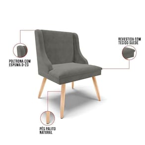 Nossa cadeira Liz é perfeita para acolher as visitas, relaxar na confraternização entre amigos e além de tudo decorar seu ambiente. Com estrutura ecologicamente correta de madeira de eucalipto e pinus, oferece durabilidade e qualidade ao móvel, seu estofamento é com espuma de densidade D-23, revestido em tecido em Suede no tom Grafite, que oferece muito conforto e resistência ao sentar, com aquela sensação de maciez e bem-estar. Ofereça ainda mais conforto para sua família através da nossa cadeira de jantar Liz.