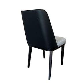 CADEIRA:Base cor Ébano| Tecido: Linho Cinzacom acabamento em Couro Cor Preto.