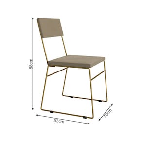 A cadeira Málaga é uma peça de design elegante e funcional, ideal para ambientes contemporâneos. Ela combina conforto e estilo, sendo fabricada em materiais de alta qualidade que garantem durabilidade, destaca-se pela sua versatilidade e acabamento sofisticado. Tipo: Cadeira Modelo: Málaga Cor: Bege Base: Dourado Tecido: Veludo Não acompanha mesa Medidas: Altura: 88cm Largura: 40cm Comprimento: 53cm ATENÇÃO AS IMAGENS SÃO MERAMENTE ILUSTRATIVAS E PODEM SOFRER VARIAÇÕES DE COR E PEQUENOS DETALHES DE ACORDO COM O SEU MONITOR, ILUMINAÇÃO DO AMBIENTE E ATÉ MESMO A SUA PERCEPÇÃO VISUAL.