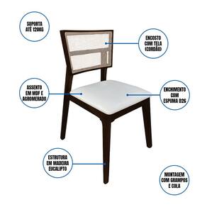 Cadeira de Jantar Manuela em Tela Assento Facto Branco Base em Madeira Maciça - Castanho