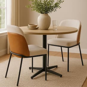 Com design moderno e sofisticado, a Cadeira de Jantar Nevada se destaca pela combinação harmoniosa entre o couro sintético caramelo e o linho cru, criando uma peça elegante e acolhedora. Seu encosto curvo envolve suavemente o corpo, enquanto a estrutura metálica em preto fosco adiciona um toque contemporâneo e industrial. A estética minimalista e os acabamentos de alto padrão tornam esta cadeira uma escolha perfeita para quem busca estilo sem abrir mão do conforto.