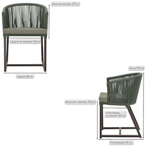 Cadeira De Jantar Noronha Alumínio Marrom E8 Trama Verde