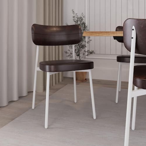 A Cadeira Alloa combina elegância com design moderno, tornando-a uma escolha versátil para diversos ambientes. Adaptação e versatilidade são as marcas da cadeira Alloa, que pode ser usada em mesas de jantar, restaurantes ou ambientes de escritório, encaixando-se facilmente em diferentes espaços. Seu encosto anatômico proporciona conforto e suporte, enquanto sua estrutura em aço garante durabilidade e resistência. A estofagem é feita com tecidos e couro ecológico de alta qualidade, oferecendo um toque macio e sofisticado.