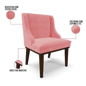 Experimente deixar sua decoração com bom gosto e qualidade com a cadeira de jantar Liz. É perfeita para você não abre mão de qualidade e requinte na hora das refeições e confraternizações com amigos e familiares. Produzida com Base Fixa Madeira Tabaco que suportam até 120 kg, estrutura ecologicamente correta de madeira de eucalipto e pinus, oferece durabilidade e qualidade ao móvel, seu estofamento é com espuma de densidade D-23, revestido em tecido suede no tom Rosê. Sofisticada e excelente para deixar sua sala de jantar mais aconchegante. Compre sem sair de casa!
