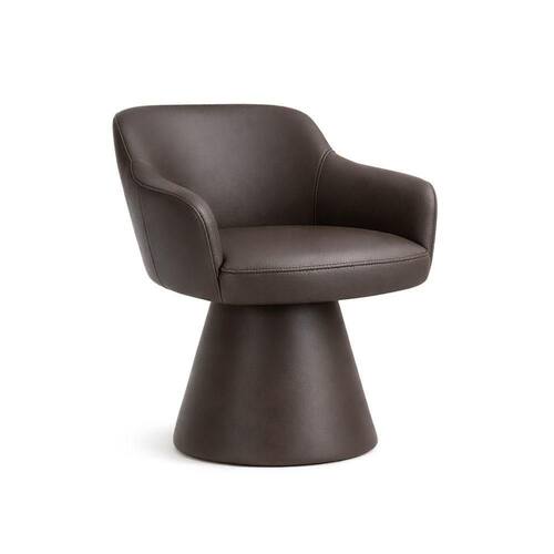 o assento conta com espuma D-28 HR, que oferece firmeza na medida certa para o uso diário, enquanto o encosto recebe espuma D-23 com fibra, garantindo apoio agradável e postura correta durante longos períodos à mesa.A base cone estofada é um dos grandes diferenciais do modelo. Ela reforça a unidade do design e eleva a percepção de qualidade, criando uma peça visualmente contínua, sólida e bem-acabada.