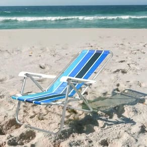 Material da Estrutura: Alumínio Tipo de Tela: Polietileno com listras coloridas Braços: Polietileno Dimensões (L x P x A): 57,6 x 10,4 x 74,7 cm Peso Unitário: 1,59 kg