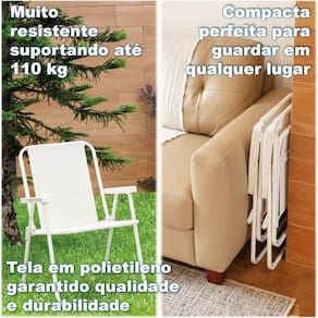 Dobrável e fácil de carregar, a Cadeira Alta Preta é prática e confortável, ideal para salas de estar, varandas, parques e campings. Muito resistente, suportando até 110 kg, tem estrutura em tubos de aço com pintura epóxi a pó preta. Com visual moderno, tem a tela em polietileno, também na cor preta. Já os apoios para os braços são em plástico polipropileno. Para guardá-la, basta dobrar. Não ocupa muito espaço, podendo ser colocada em cantos e lugares estreitos. Versátil e funcional, é um charme na decoração.