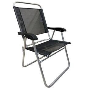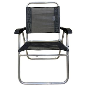 Esta cadeira de praia alta é confeccionada em tecido sanete poliéster e possui uma estrutura de alumínio. O braço é de plástico e da mesma cor do tecido. A cadeira tem capacidade para suportar um peso de até 100 Kgs.