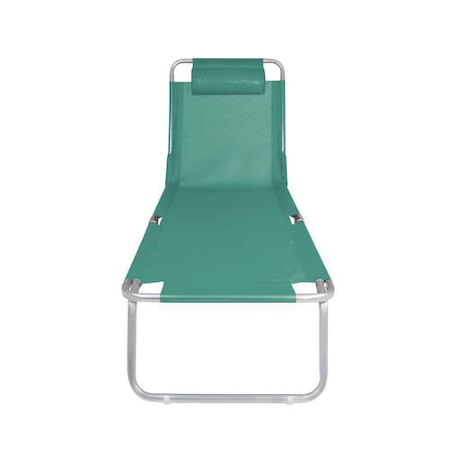 Composição: Tela 100 % poliéster com revestimento em PVC, com proteção UV, estrutura em alumínio, travesseiro em espuma, pés e ponteiras em polipropileno.