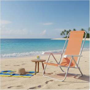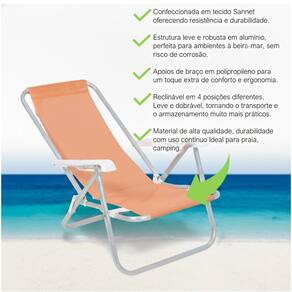 Cadeira de Praia Reclinável 4 Posições Alumínio Lazy Sannet Laranja - 023011 Belfix