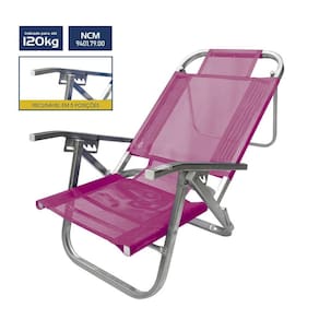 A Cadeira De Praia Reclinável Copacabana Rosa Botafogo suporta até 120Kg, sendo perfeita para pessoas de diferentes pesos e tamanhos. Suas dimensões são: largura do assento de 44,5cm, altura do chão ao assento de 28,5cm e altura do encosto de 47cm. Ela também é muito fácil de transportar, pois possui um peso de apenas 2,78kg.