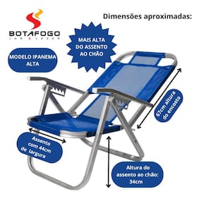 Cadeira de Praia Reclinavel Reforçada 5 Posições Botafogo Cor: IPANEMA Azul Alta