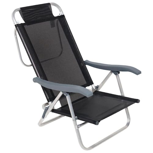 Especificações Estrutura: Alumínio Capacidade de Peso: 120 kg Posições de Reclínio: 6 Material do Assento: Poliéster com revestimento em PVC Apoios de Braço: Polipropileno Medidas da Cadeira: 71 cm x 57 cm x 86 cm Itens Inclusos Cadeira de Praia Reclinável Sunny Mormaii Preta Bel Perguntas Frequentes (FAQ) Pergunta: A cadeira é fácil de limpar?